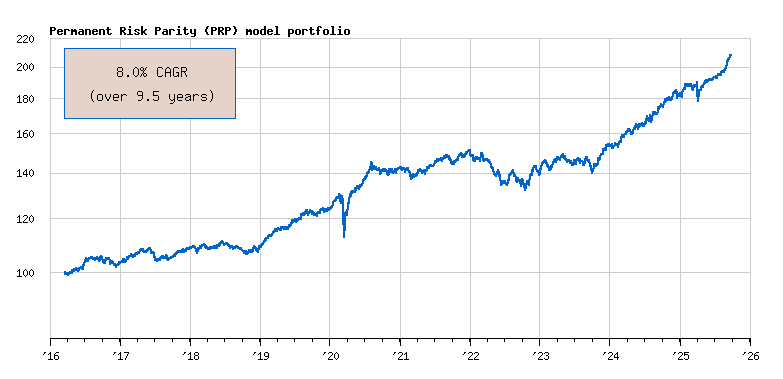 I track my portfolio’s performance since inception. This full-period CAGR is currently 8.0% — the highest I’ve seen since I began using the risk parity strategy.